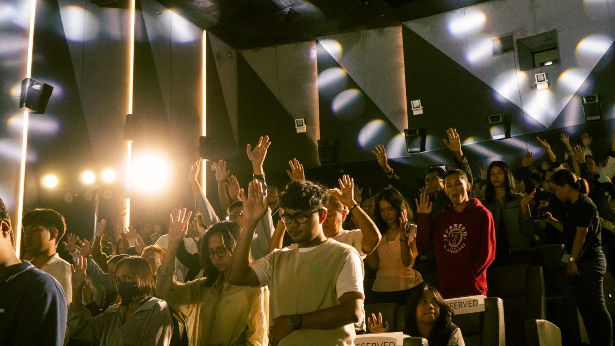 Both venues carried the same spirit of reverence and expectancy. While one space gathered physically inside the cinema, the other mirrored the same posture of worship and attentiveness, united through the live broadcast and shared purpose.