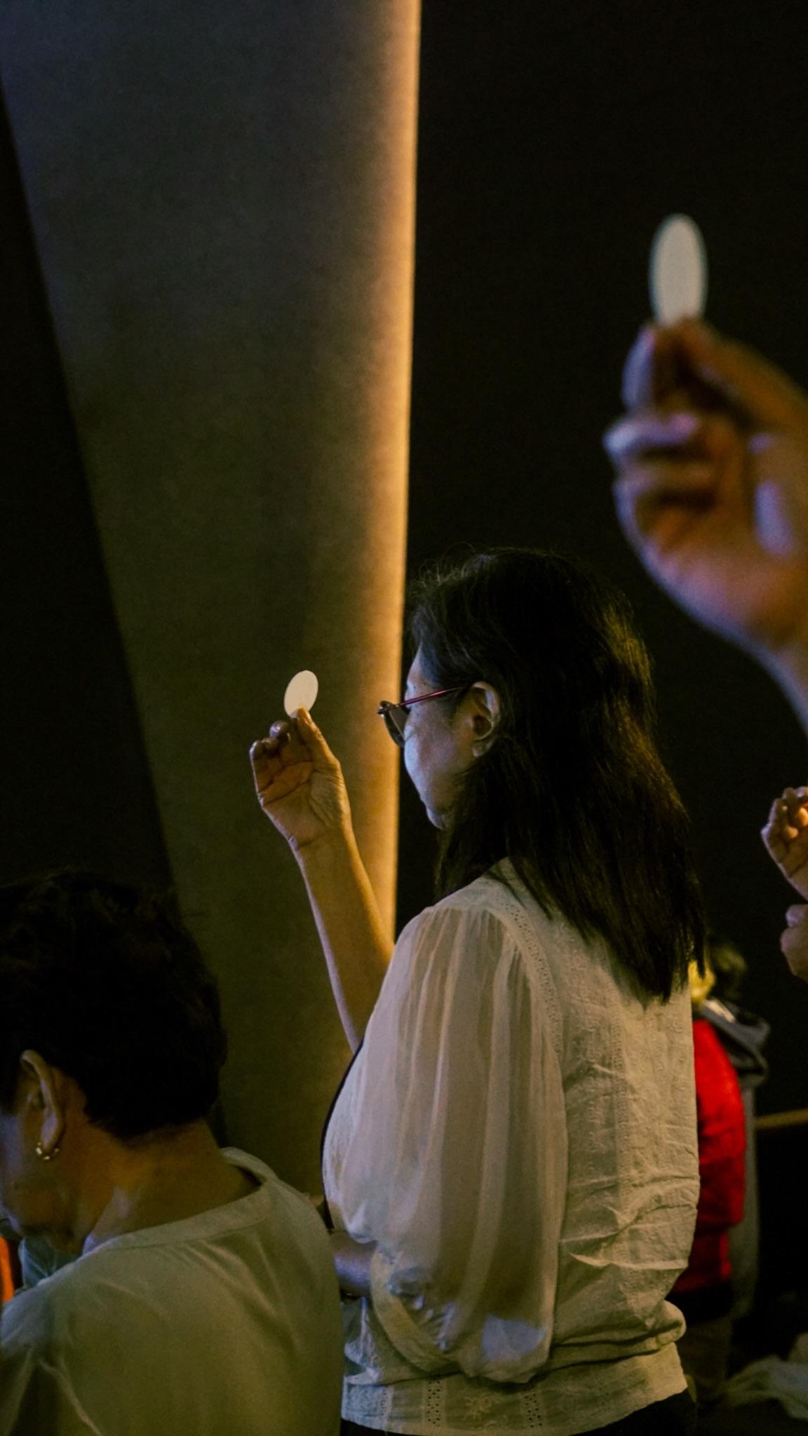 A sacred moment of prayer and reflection during Holy Communion.