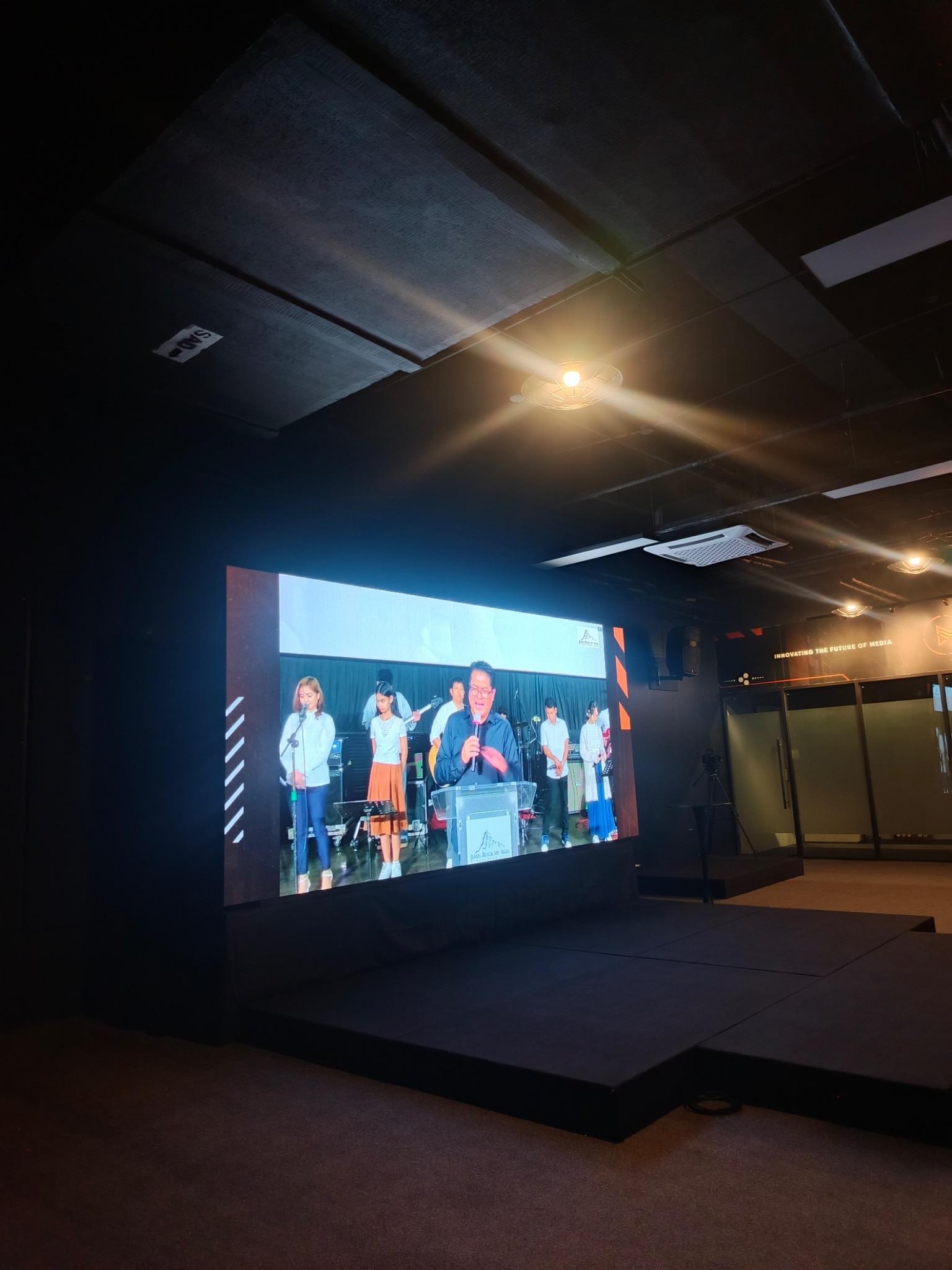 As members continued to arrive, it became clear that Cinema 10 could no longer accommodate everyone. To ensure that no one would be turned away, an overflow area was prepared at the Media Lab, located on the same floor as Cinema 10. The service inside the cinema was broadcast live to the Media Lab, allowing members in the overflow area to fully participate in worship, the preaching of the Word, and every moment of the gathering.