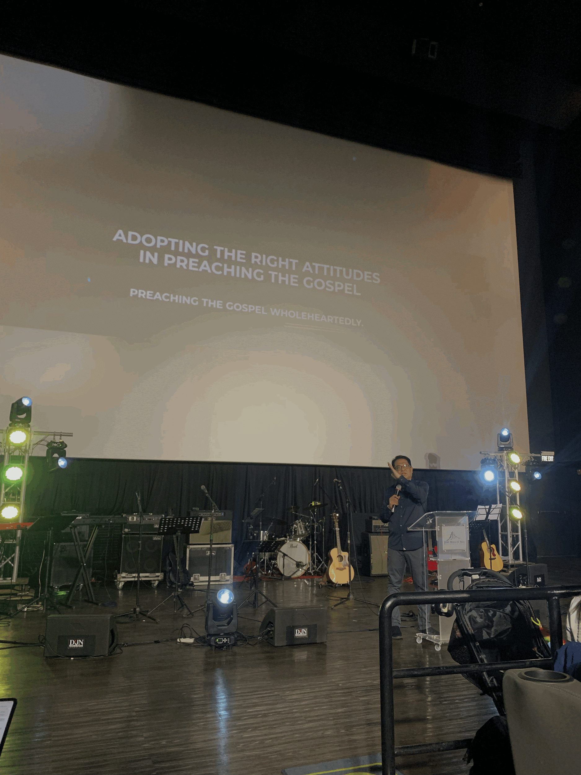 Senior Pastor Aldrin Navo delivering the message with clarity and pastoral conviction.